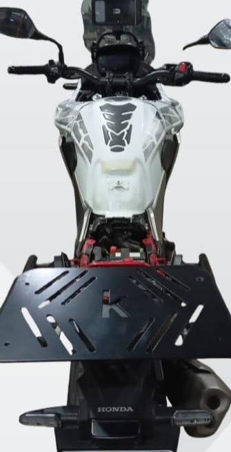Porta equipaje KONDOR tipo platina. Construido en acero al carbono 1010. Dimensión de la platina 18 x 28cm en 3,2mm de espesor con sus laterales plegados para una terminación suave y robusta. Piezas periféricas 22x 3,2mm. Soldado con sistema MIG de tipo soldadura continua, con una mayor penetración. Pintado con pintura epoxi en polvo, adherido por sistema electroestático y horneado para un acabado con mayor durabilidad.