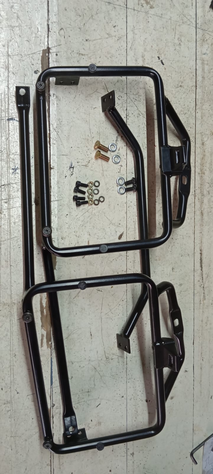 Laterales para Honda CB 500X – Marca Kondor Descripción del producto: Diseñados específicamente para la Honda CB 500X, los laterales Kondor ofrecen la combinación perfecta de estilo, funcionalidad y resistencia. Fabricados con materiales de alta calidad, estos accesorios están pensados para los motociclistas que buscan protección adicional y mayor capacidad de carga en sus viajes, ya sea en carretera o fuera de ella. Características principales: Compatibilidad: Honda CB 500X (todas las versiones). Material: Acero tubular de alta resistencia con acabado en pintura electrostática, resistente a la corrosión y al desgaste. Diseño funcional: Permiten la instalación de maletas laterales rígidas o blandas (tipo alforja), sin interferir con el escape ni con el pasajero. Protección adicional: Ayudan a proteger los laterales de la motocicleta ante caídas o roces accidentales. Fácil instalación: Se instalan utilizando los puntos de anclaje originales de la moto, sin necesidad de modificaciones. Diseño robusto y estilizado: Se integran perfectamente con el diseño aventurero de la CB 500X, manteniendo una estética limpia y profesional. Ideal para: viajes largos, rutas off-road y uso diario con necesidad de equipaje adicional. Este producto es totalmente compatible con baúles laterales Kappa y Givi, modelos: Kappa K21N (21L) Kappa K22N (22L) Givi E21 (21L) Givi E22 (22L)
